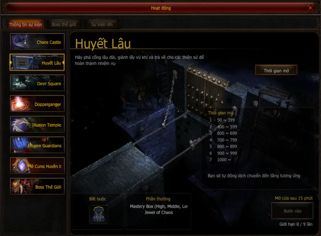 Cấp độ đi Huyết Lâu trong MU Online Season 20