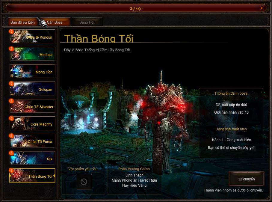 Cách tham gia săn Boss Thần Bóng Tối